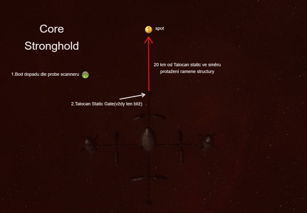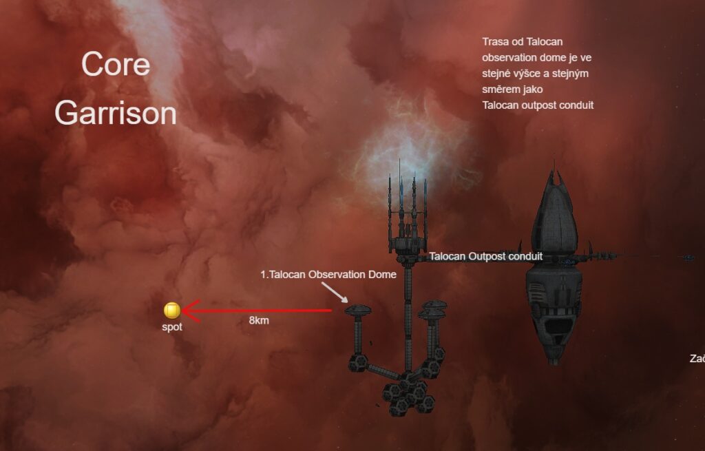 • Postup : Po Warpu na 1 combat sajtu uložíme zachytný bod od kterého budeme později odměřovat BM pro ratění. V případě Core Garrison je to “Talocan Observation Dome”.